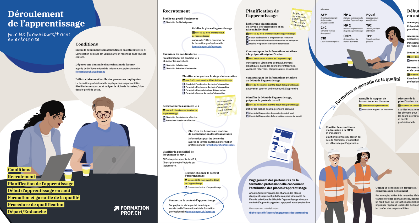 L’objectif de ces supports est de faciliter la compréhension des processus et des enjeux de la formation professionnelle chez les apprenti-e-s, les formateur-trice-s en entreprise et les partenaires institutionnels
